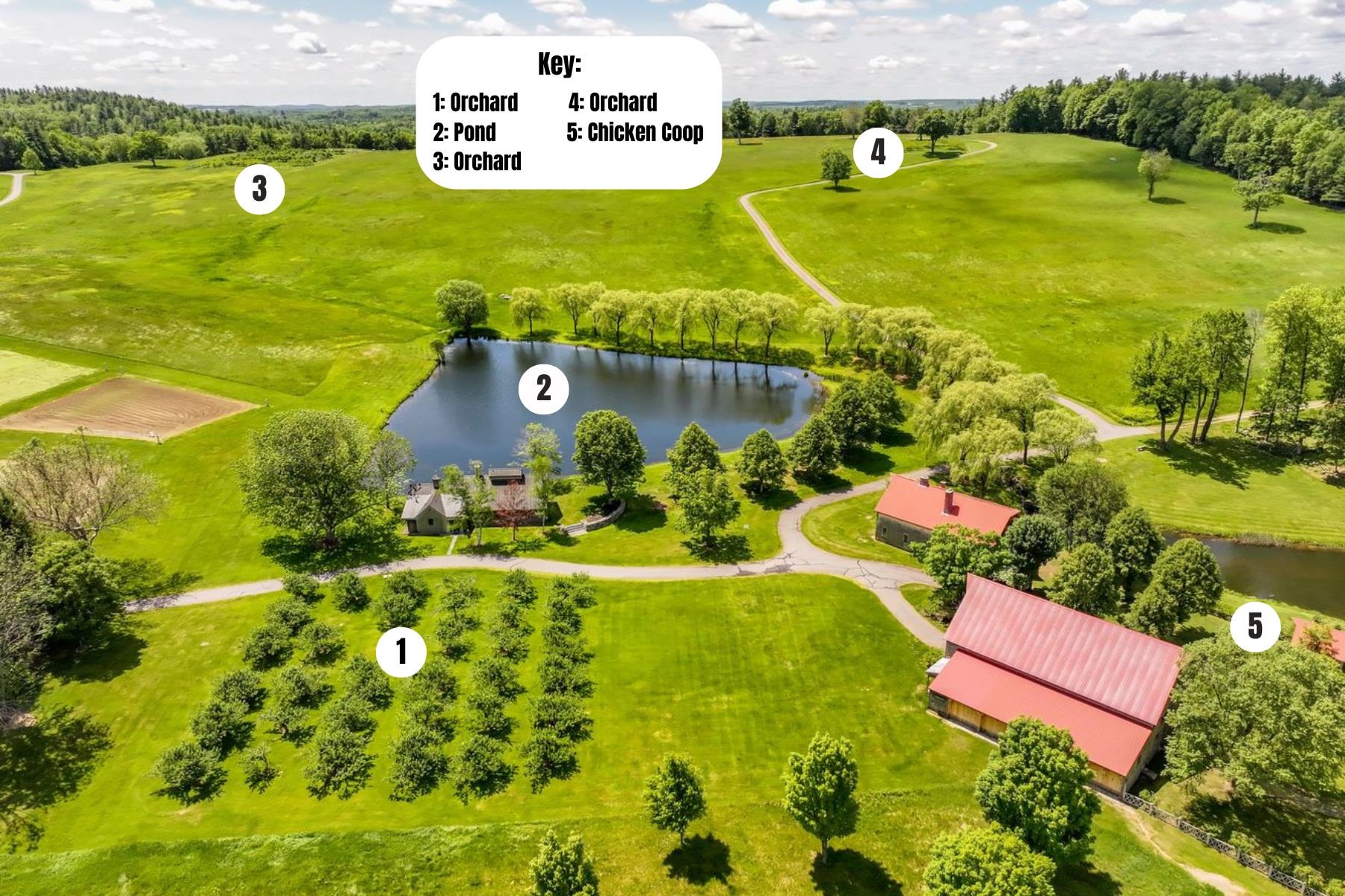 140 Acres of Rare Opportunity in Kensington, NH. Discover an extraordinary property offering a truly rare opportunity in one of southern New Hampshire's most desirable locations. Just 4 miles from I-95, this remarkable parcel combines privacy, convenience, and scale--only 50 minutes to Boston, 20 minutes to the beaches, and a short drive to Exeter and Portsmouth. The land features rolling pastures, wooded areas, three serene ponds, four professionally maintained orchards with apple, peach, and plum trees, a picturesque bridge, and up to 80 acres of open fields. Approximately 1.5 miles of paved roads wind through the property, providing excellent access throughout the property. All underground utilities are in place, adding valuable infrastructure for future use and development. A 5,000+ sq. ft. post-and-beam barn, guest or caretaker cottage, and chicken coop are already on site, creating a versatile framework for agricultural, equestrian, recreational, or future vision-based use. The existing main house offers potential for renovation, replacement, or a custom rebuild, allowing the next owner to shape the property to suit their needs. This is a rare chance to own a substantial and highly versatile piece of Kensington with exceptional location, scale, and long-term potential.