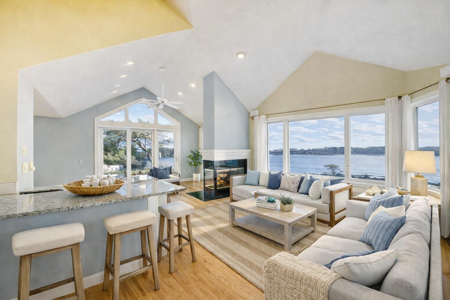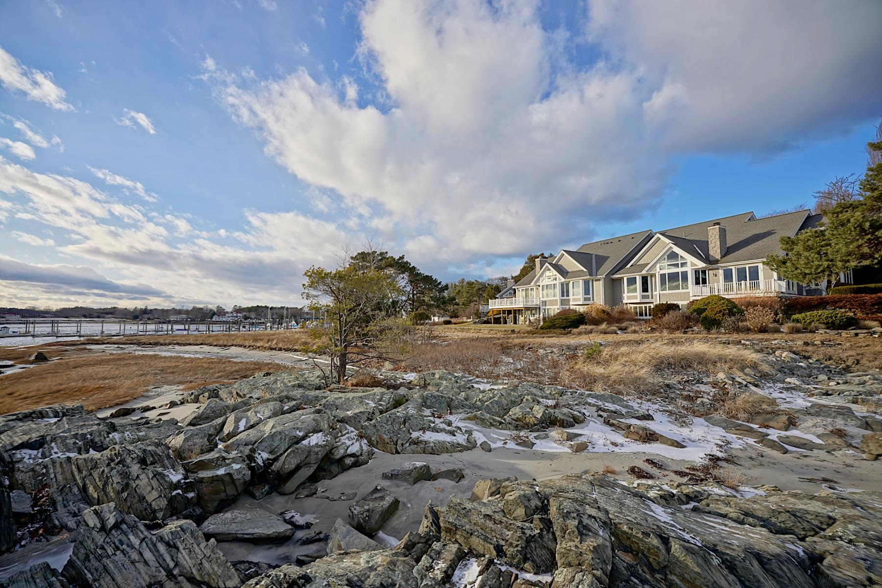 Positioned to the south with views across Little Harbor, the marina, and outward toward the Isles of Shoals, this residence within Wentworth's Dockside community enjoys a setting widely regarded as one of the Seacoast's premier coastal locations. The home is designed as a modern Cape, with the main living level thoughtfully oriented to the water. Expansive windows keep the harbor ever-present from the principal living spaces, creating a strong connection to light, movement, and tide. The layout offers three bedrooms and five baths, with the flexibility of a primary suite on either the first or second floor. The lower level is well suited for a home theater, gym, or beach-level changing area, supporting an active coastal lifestyle. Deeded, private beach access through a landscaped path preserves privacy while leading to the sandy shoreline for kayaking, paddleboarding, and swimming. Dockside offers walkable access to the community pool, pickleball courts, clubhouse, and marina, as well as the Wentworth By The Sea Hotel and Spa. Across the harbor, the Wentworth By The Sea Country Club adds golf and additional amenities within minutes. This New Castle setting is defined by a rare combination of harbor views, access to the water, and a lifestyle shaped by both privacy and community.
