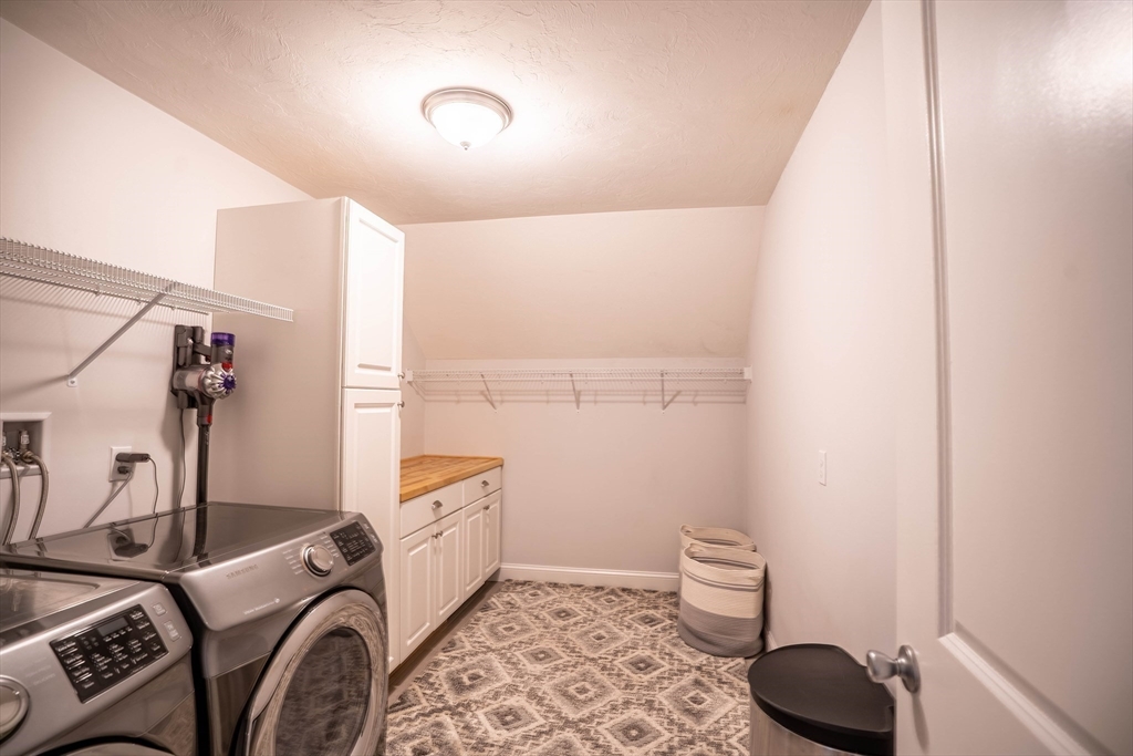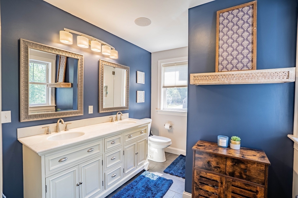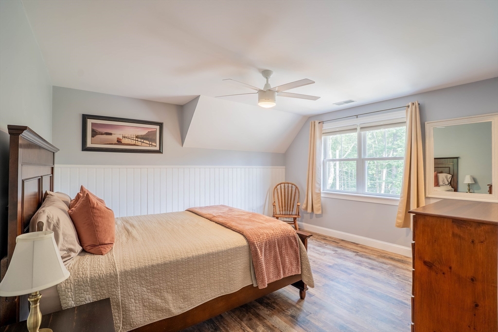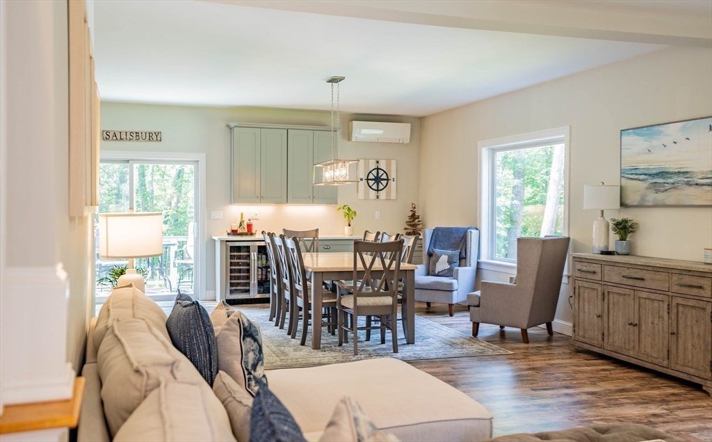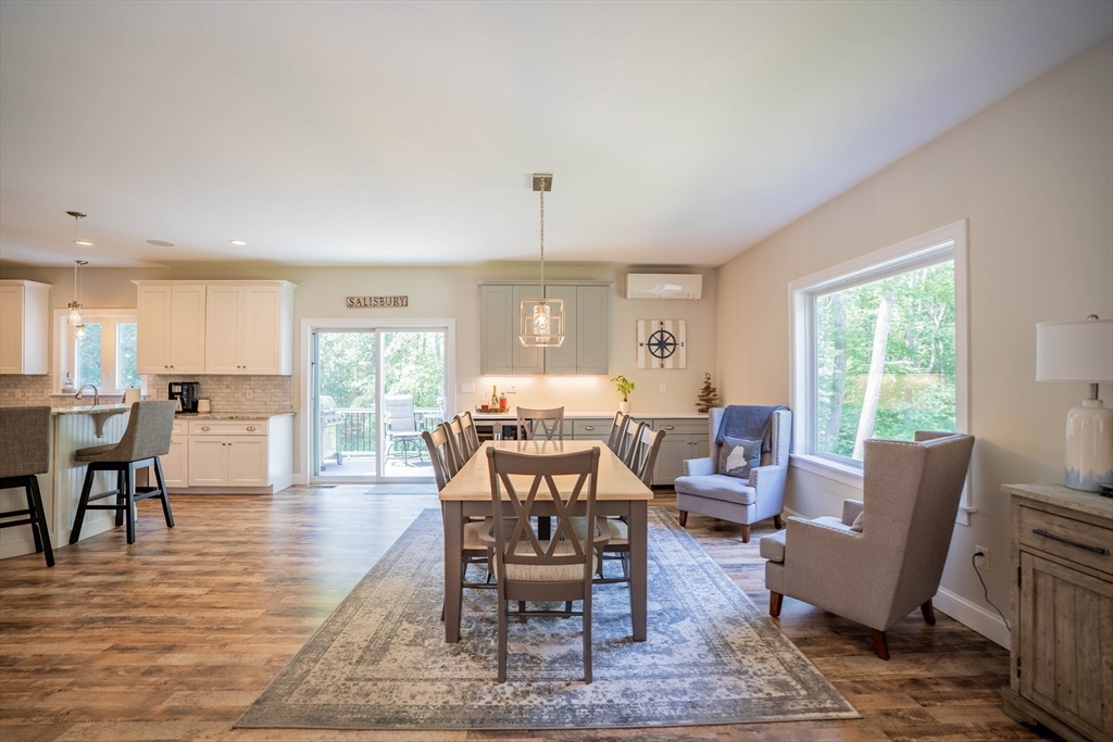 Discover your dream home in Salisbury! This charming retreat offers modern living and serenity just miles from the beach. Spanning over 3,000 sq ft on a vast 1.76-acre lot, this home is designed for relaxation and entertainment. The open concept 1st floor with spacious living area and 3/4 bathroom, that connects to an expanded deck overlooking a new patio and fenced-in side yard, is perfect for gatherings. Natural light floods the dining area through an oversized window, creating a warm ambiance. The modern kitchen features pantry storage, a dry bar counter, and a beverage cooler. Upstairs, find four bedrooms, including a primary en-suite with a walk-in closet, large laundry room, and full bath. The sunlit basement provides an ideal space for a home office or media room. Enjoy energy-efficient living with solar panels. This turnkey home is ready for you, offering ample storage and charming details. Don't miss this chance to own a slice of the seacoast. Shown by appointment only.