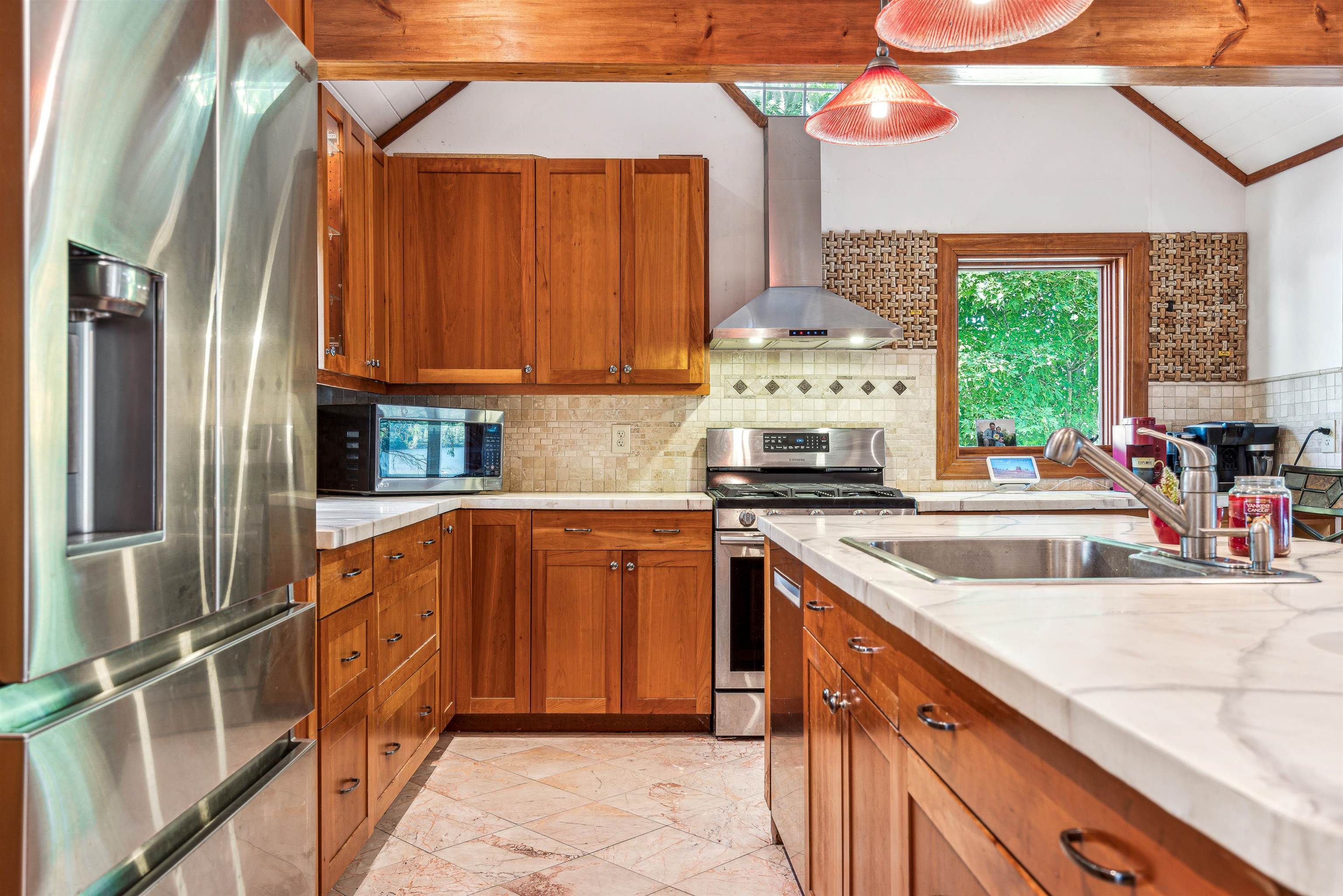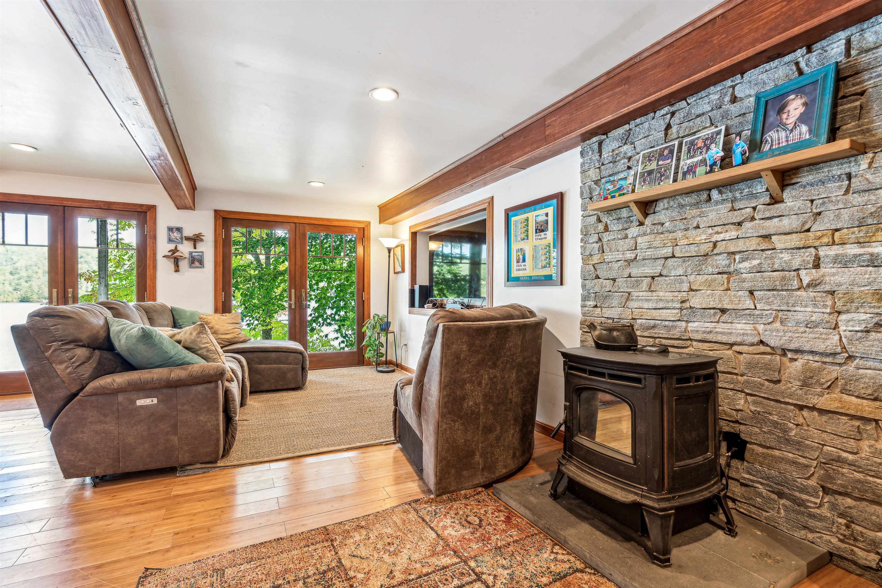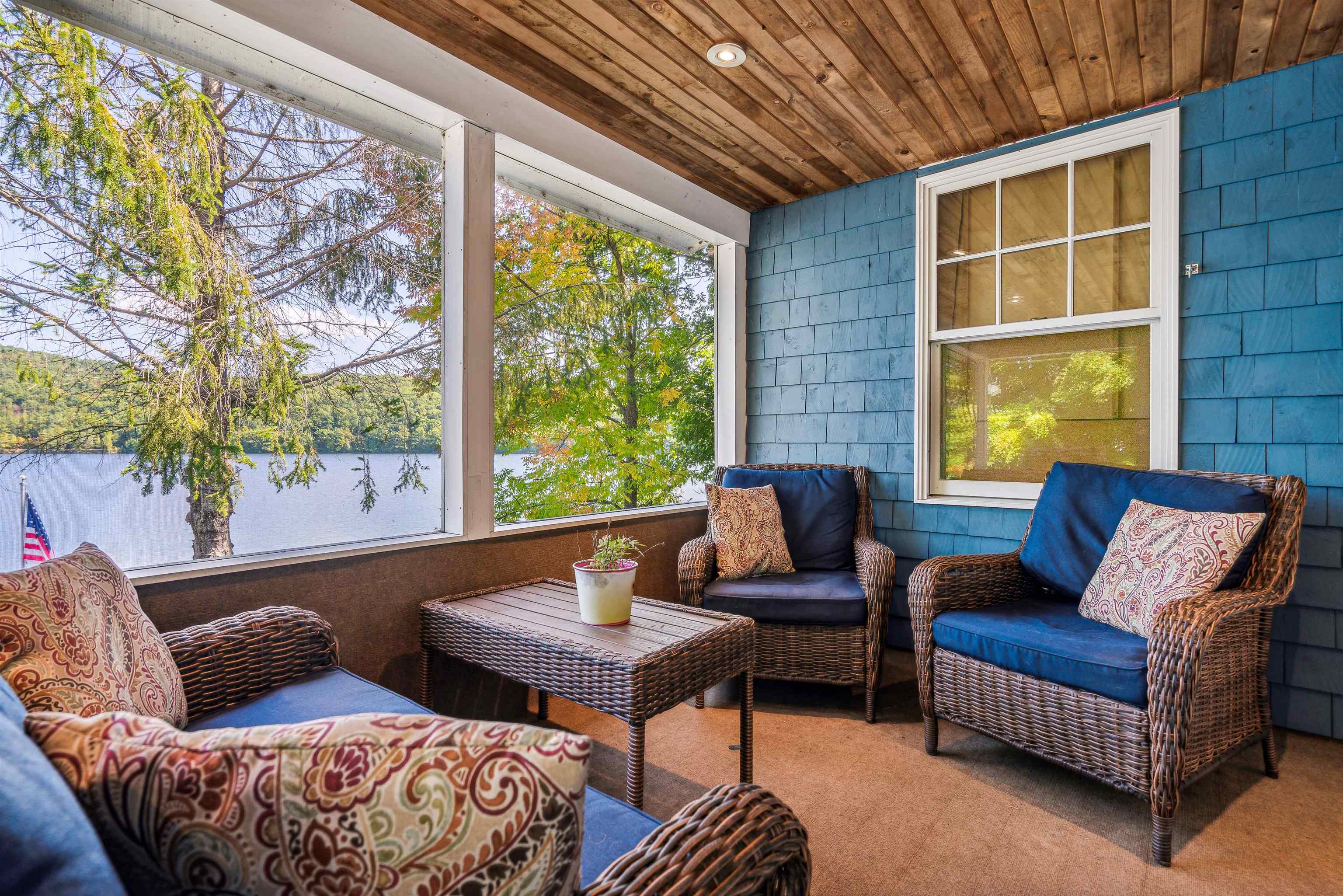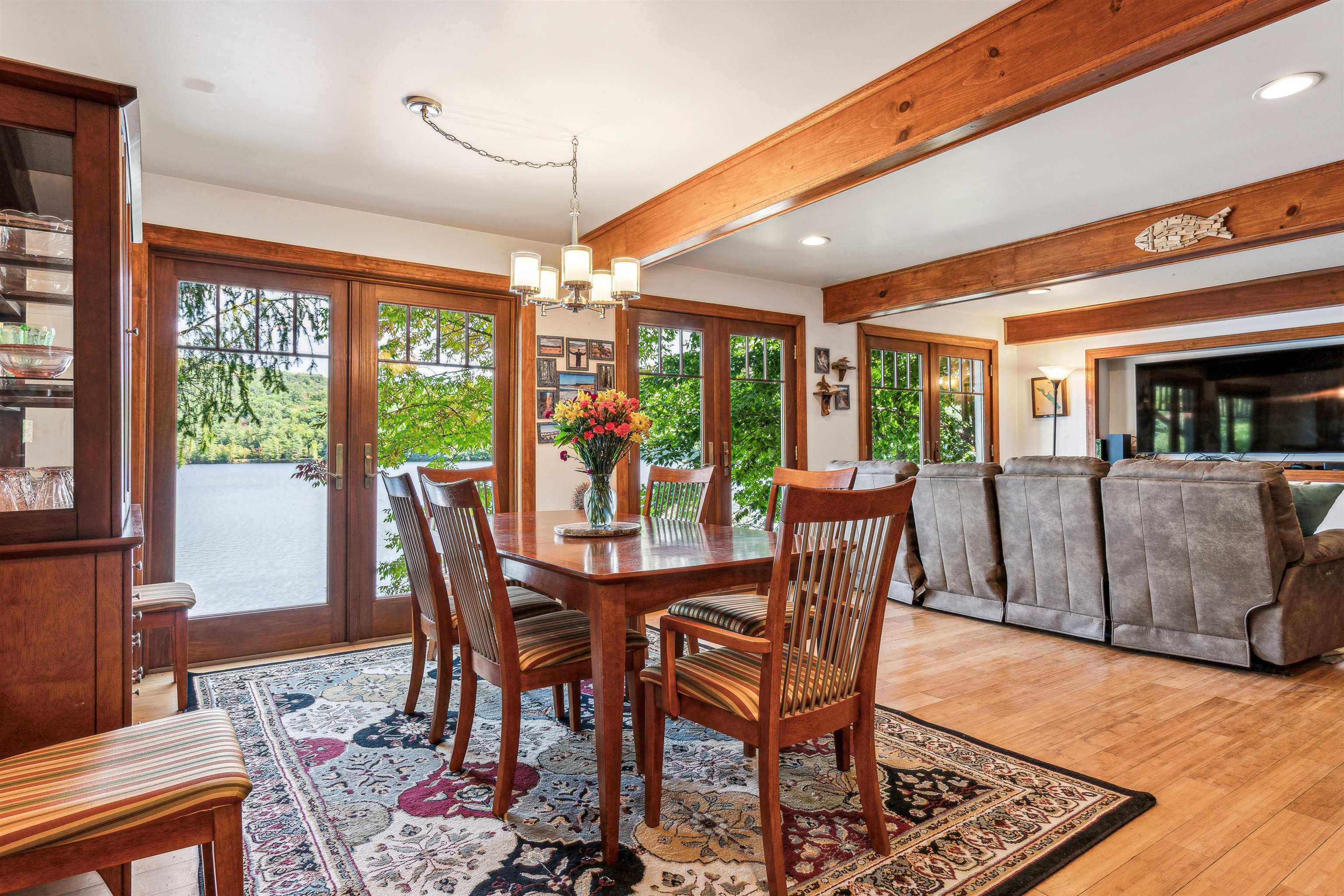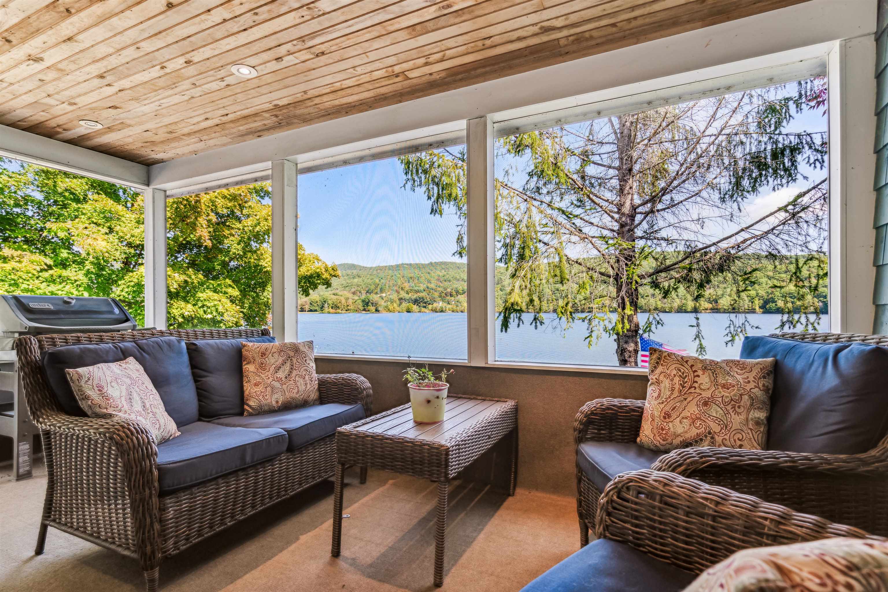 Fantastic Mascoma Lake property with 93' of water frontage and breathtaking views of the surrounding mountains. The open layout connects a spacious kitchen, dining area, and family room with an adjacent screened-in seasonal porch to take in your dock, boat, and the expanse of the lake beyond. The interiors have recently been substantially renovated and upgraded, with a floor plan flow that accentuates the water view. There are three bedrooms upstairs, one of which is a primary suite overlooking the lake, while an office on the first floor could easily be converted into an additional bedroom. Stay warm in the winter with the pellet stove and radiant heat throughout. With so much fun on the lake leaving will be challenging, but when you do I-89 is nearby, making the rest of the Upper Valley readily accessible.