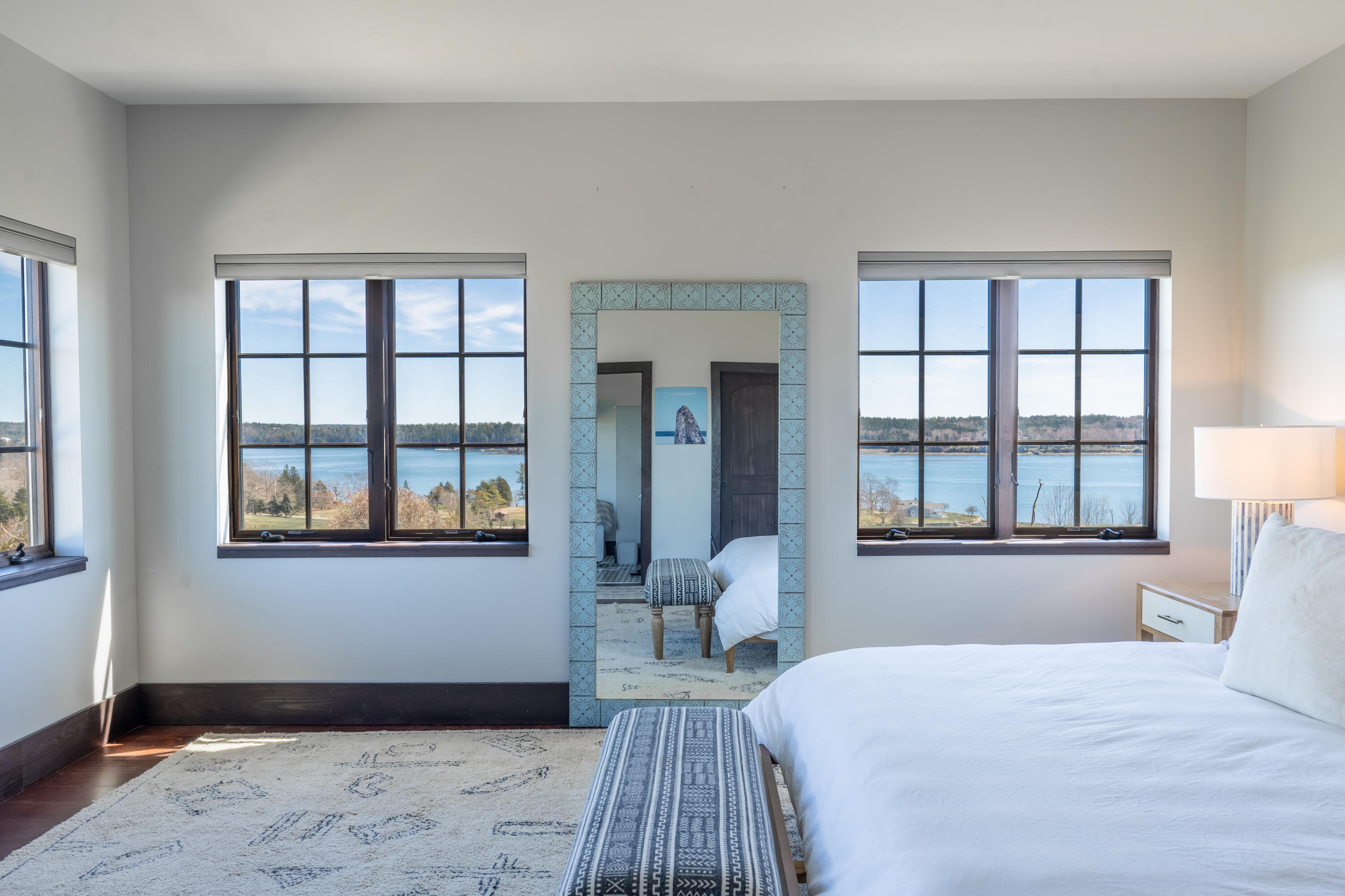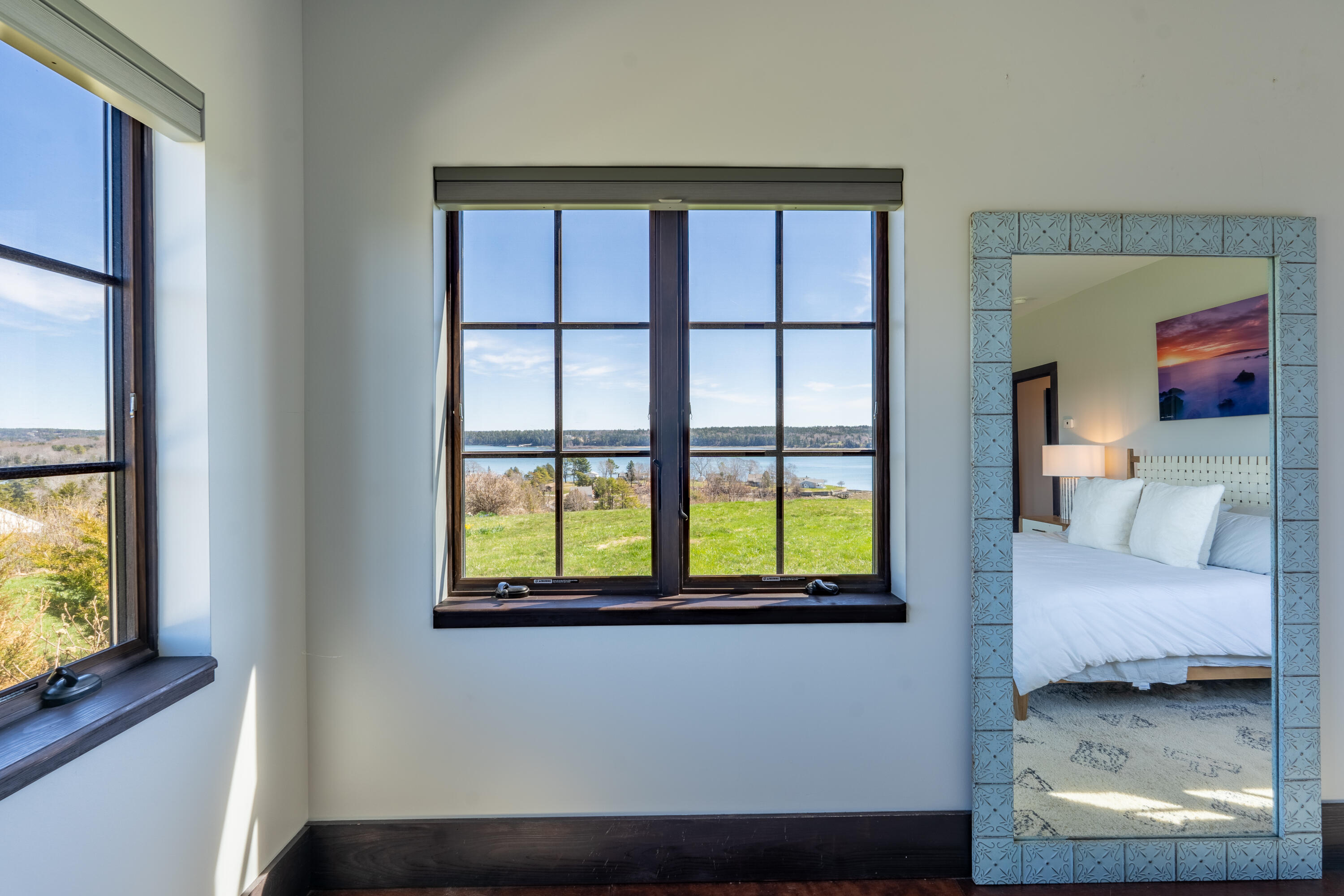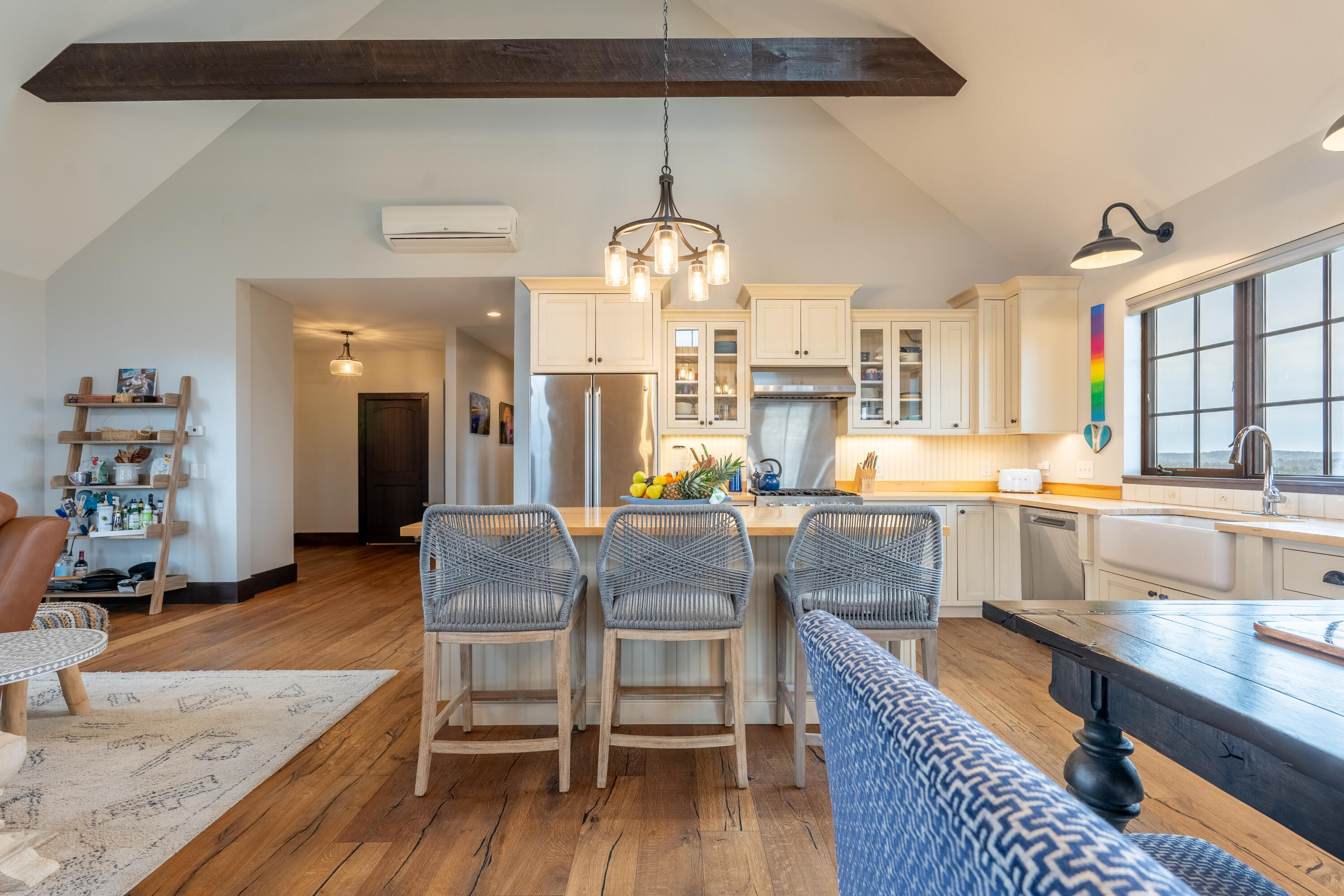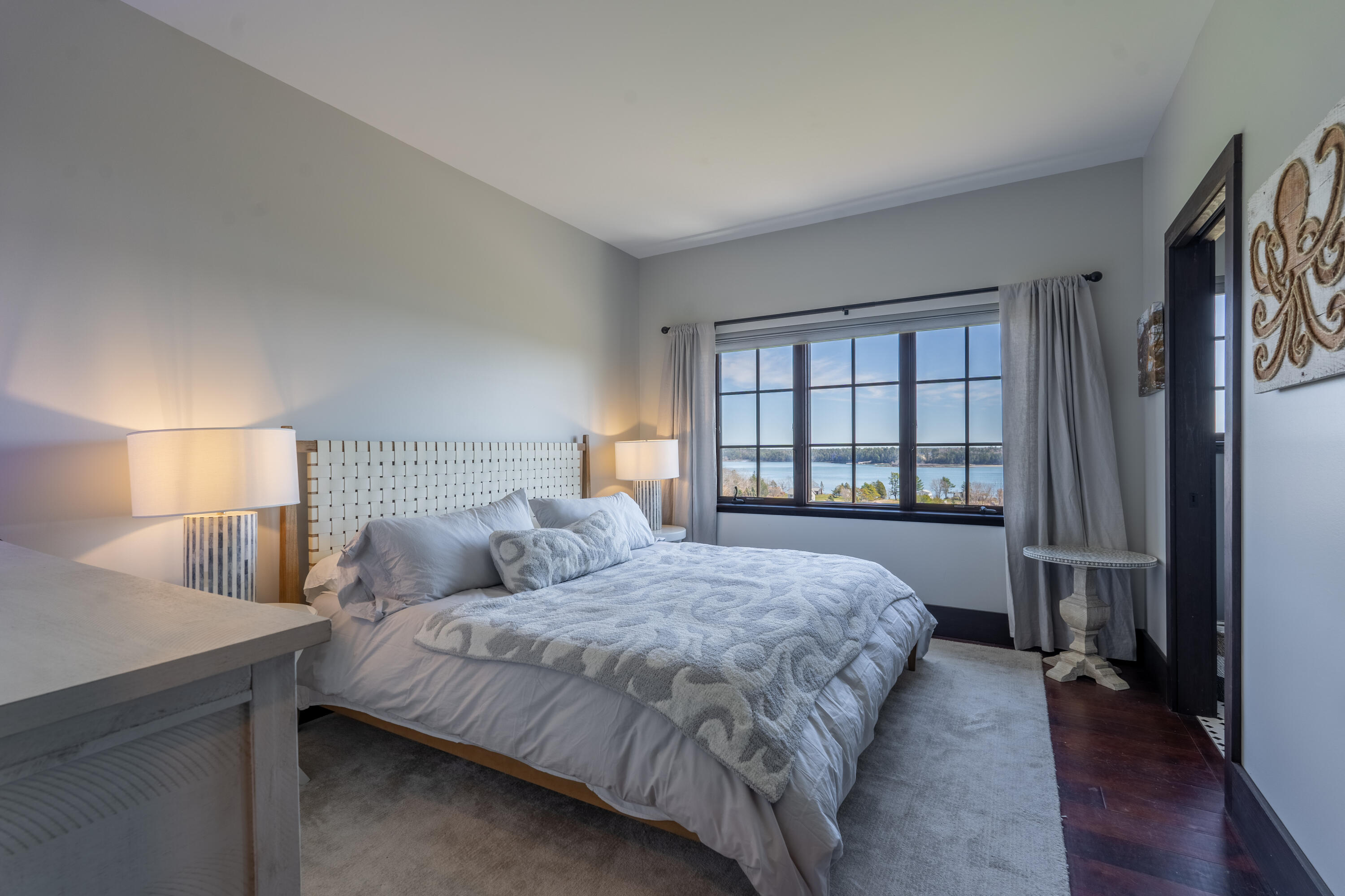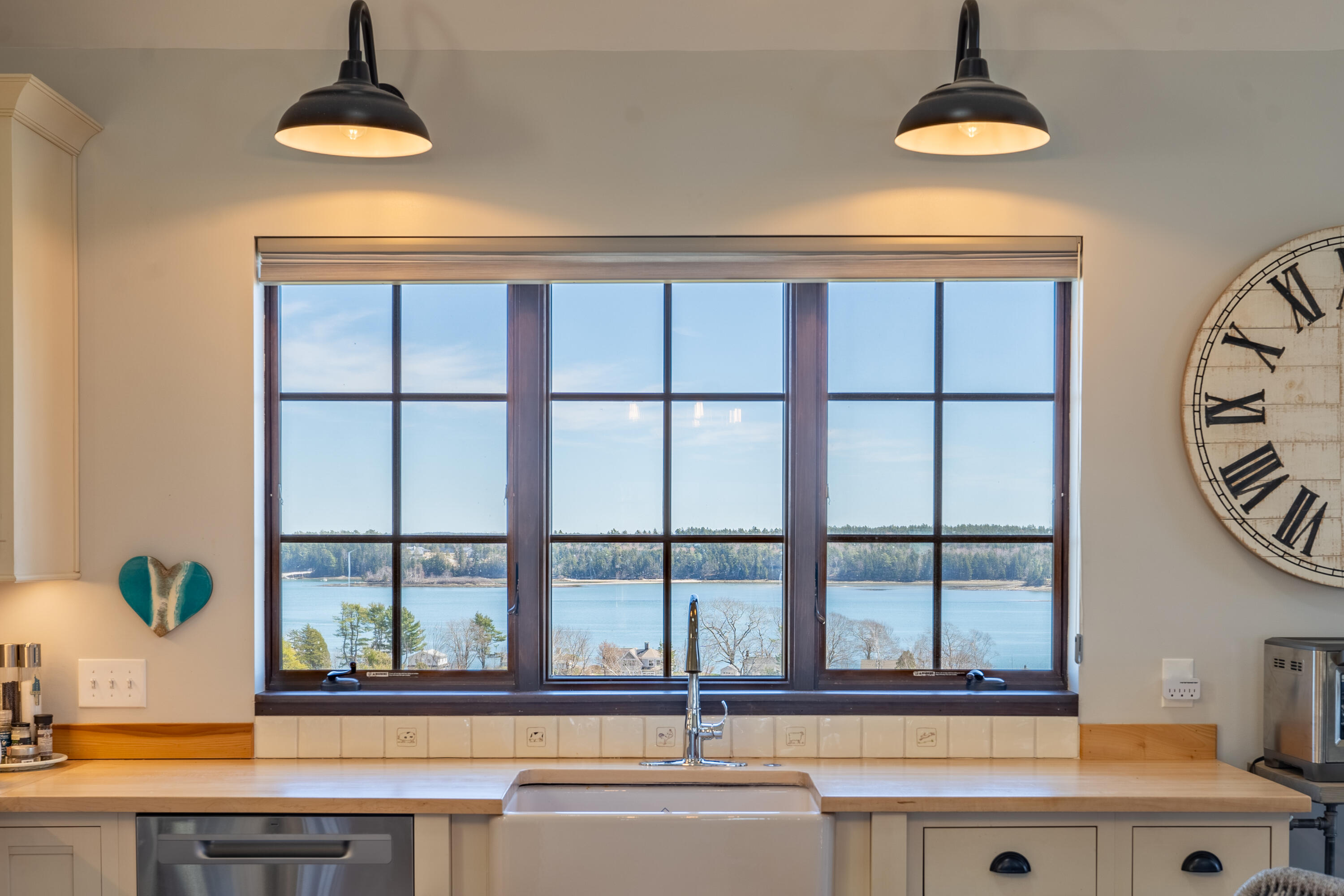 This stone-clad country estate embodies the quintessential Maine Experience. Perched on one of the highest points along the coastline, the property offers unparalleled panoramic views of the ocean, forever protected by a view easement and open green rolling fields. Come in to discover a single-level design with endless water views from every room. The great room boasts soaring beamed ceilings and a stone wood-burning fireplace. Enjoy the open-concept chef's kitchen, complete with a new Viking range which beckons you to partake in culinary adventures. French doors lead to a spacious stone patio, perfect for dining alfresco and soaking in the serene setting. Constructed with high-end finishes, this home exudes quality with timeless appeal. Just outside your coastal haven, the surrounding property is a testament to Maine's natural splendor, with open fields & curated gardens that provide a sense of tranquility without sacrificing privacy.