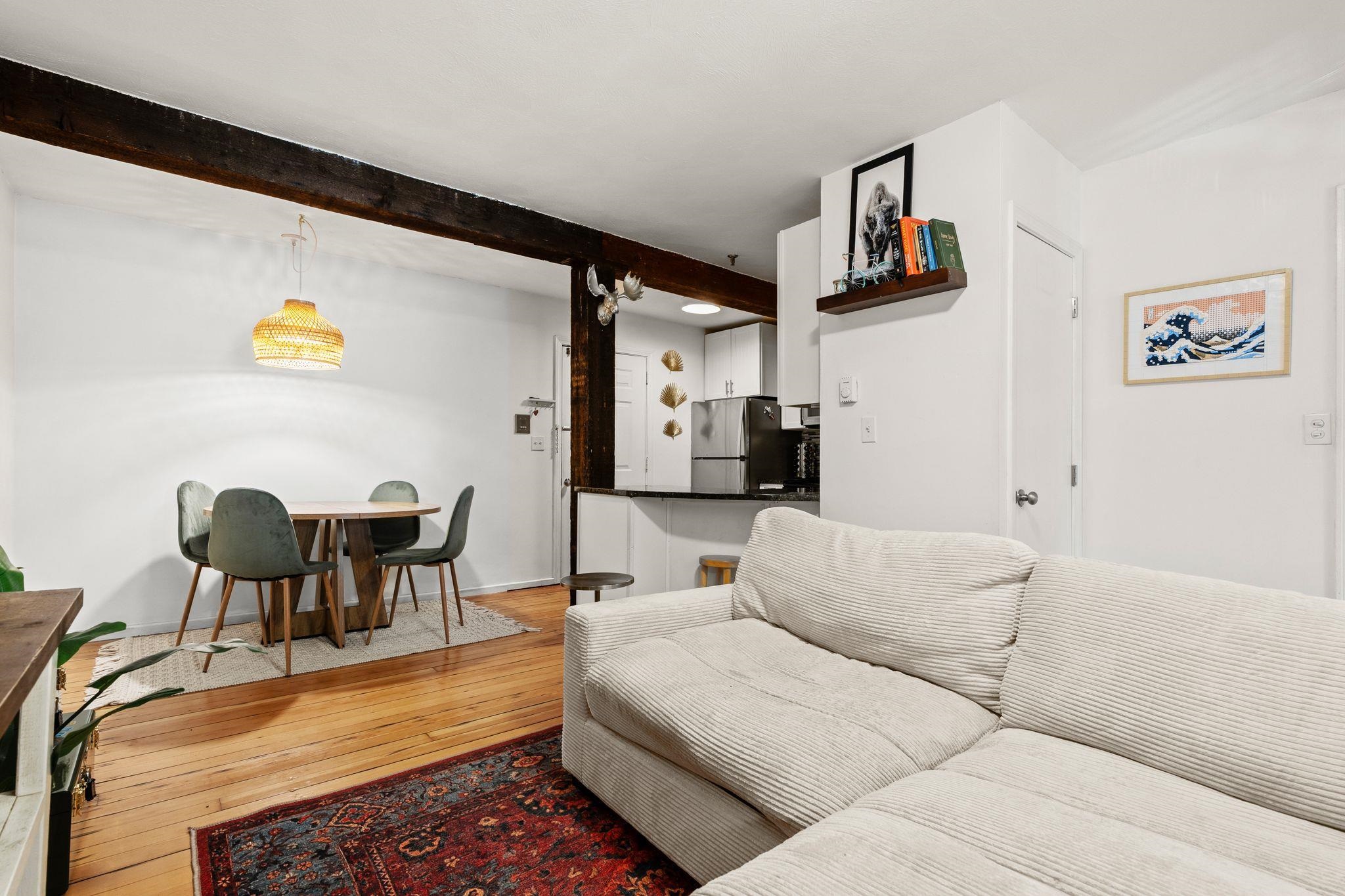 Experience vibrant downtown living in this beautifully updated Portsmouth condo! Nestled on the fourth floor of the McIntosh Condominiums, this one-bedroom home offers a perfect blend of charm and convenience. The remodeled kitchen features granite countertops, sleek cabinetry, and stainless steel appliances. Refinished hardwood floors, a newer water heater, and an updated bathroom complete this turnkey condo. Natural light pours in, showcasing city views just outside your window. With on-site laundry facilities, elevator access, secure entry, and low condo fees, daily life is effortless. Nearby garage parking (for rent) and proximity to top restaurants, theaters, and shops make this an exceptional opportunity. Whether you're looking for a year-round home or a weekend escape, enjoy everything downtown Portsmouth offers! Nearby garage parking is available to be rented through the Foundry Garage. Buyers must contribute two months of condo fees to the association at closing.