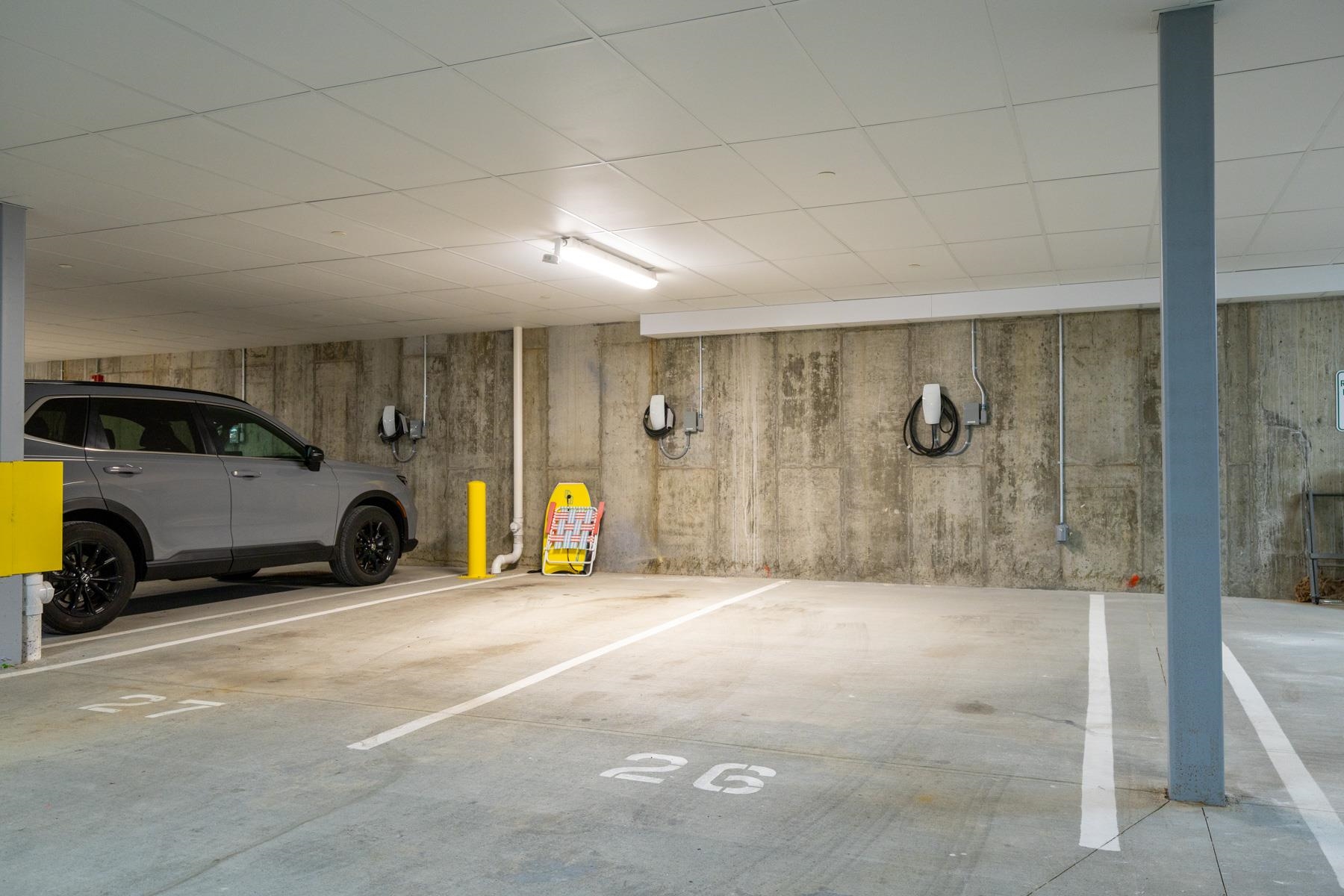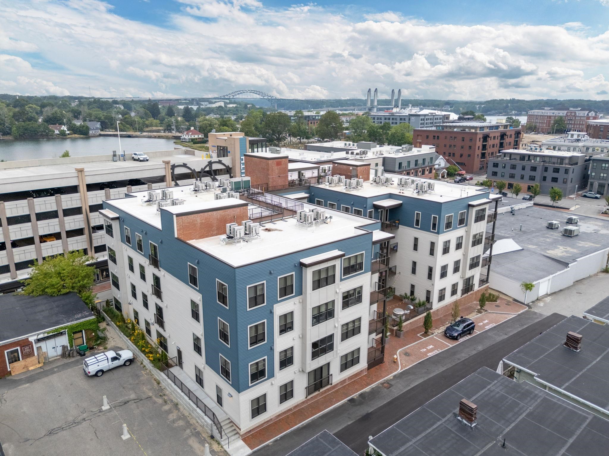 Deeded underground garage parking--an exceptional rarity in downtown Portsmouth. Perfectly located just steps from the Seacoast's finest dining, shopping, and cultural destinations, Unit 103 is a sun-filled, first-floor corner residence offering true single-level living with two bedrooms, two baths, plus a den--thoughtfully designed for both comfort and effortless walkability. The open-concept layout is anchored by a well-appointed kitchen with sleek, contemporary finishes that flow seamlessly into the living area. Abundant natural light fills the space through oversized windows and a Juliet balcony that strengthens the connection to the city beyond. The corner positioning adds a sense of privacy and scale, while the thoughtfully designed floor plan provides comfort and separation, featuring generously sized bedrooms, spacious closets, and a private en-suite primary bath. A flexible den offers ideal space for a home office, expanded laundry room, or guest overflow. Additional highlights include in-unit laundry, central air, and elevator access for seamless day-to-day living. Residents enjoy a curated suite of amenities, including a fully equipped fitness center, resident lounge and meeting space, and a rooftop deck with sweeping city views--perfect for entertaining or unwinding above it all. Deeded garage parking and professional management further enhance convenience and long-term value. Whether you're seeking a full-time residence, a refined pied-a-terre, or a low-maintenance investment, Unit 103 presents a compelling opportunity to own in downtown Portsmouth's newest and most desirable luxury condominium community, The Residences at Foundry Place.